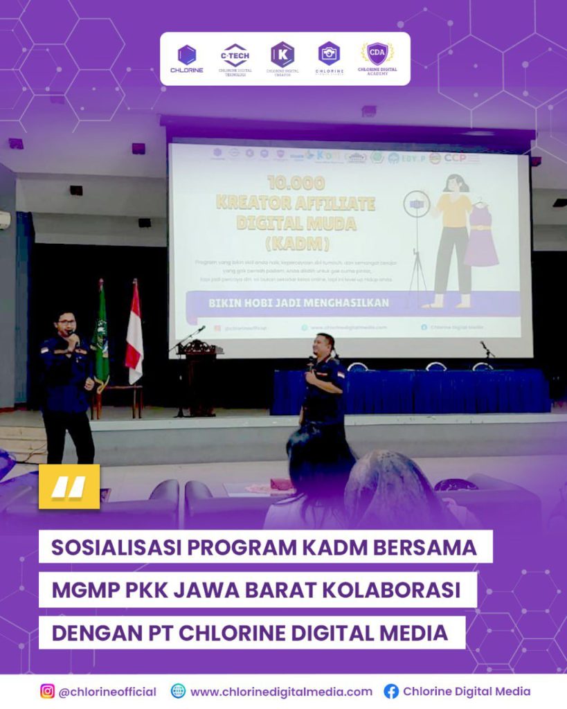 Saat ini, peluang untuk berkarya dan memiliki pendapatan tidak lagi terbatas pada pekerjaan konvensional. Melalui program 10.000 Kreator Affiliate Digital Muda (KADM), PT Chlorine Digital Media bersama MGMP PKK Jawa Barat membuka jalan baru bagi generasi muda untuk memanfaatkan dunia digital sebagai ruang aktualisasi diri dan peluang ekonomi. Program ini berlangsung secara resmi, yang dihadiri […]